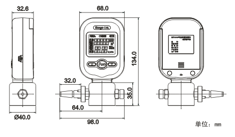 測(cè)量氣體流量(liang)的流量計 機械尺寸(cùn):