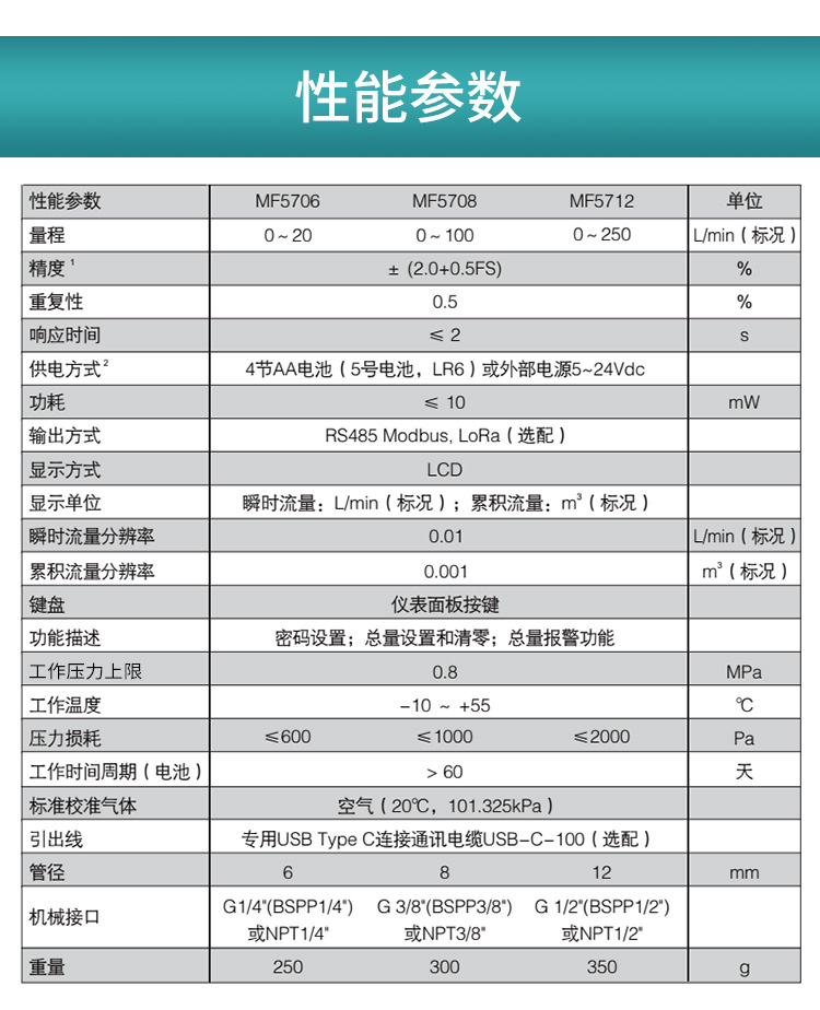 MF5712-G-250-A-B氣(qì)體質量流(liú)量計 計技術參(cān)數: