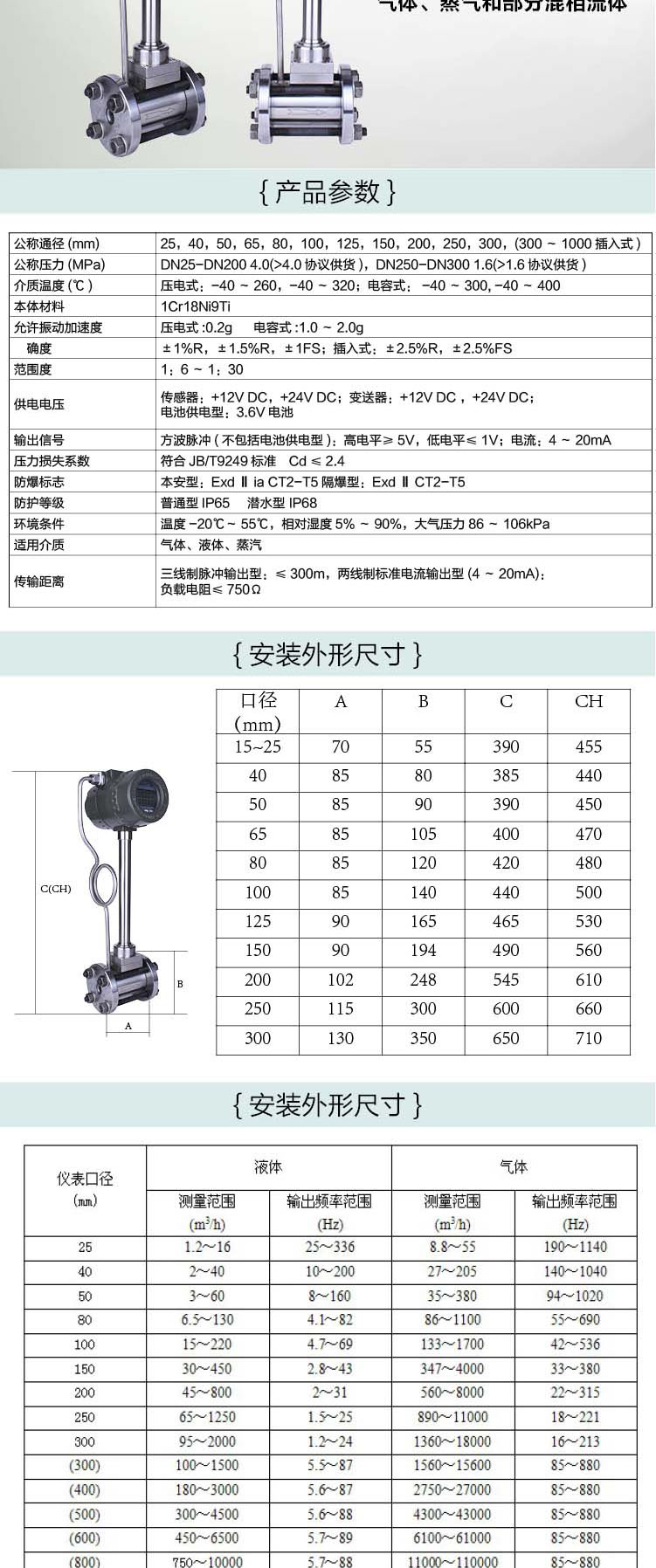智能渦(wo)街流量計 型号爲:LUGB, 主要用(yong)于工業管道介(jiè)質流體的流量(liang)測量,如氣體、液(ye)體、蒸氣等多種(zhong)介質。其特點是(shì)壓力損失小,量(liàng)程範圍大,精度(du)高,在測⭕量工況(kuang)體積流量時幾(jǐ)乎不受流體密(mi)度、壓力、溫度、粘(zhān)🤞度等參🌈數的影(yǐng)🛀響。無可動機械(xiè)零件,因此可靠(kào)性高,維護量小(xiao)。儀表參數能長(zhang)期穩定。渦街流(liú)量計采用壓電(dian)應力式傳感器(qi),可靠性💞高,可在(zài)-20℃~+250℃的工作溫度範(fan)圍内工作。有模(mo)拟标準🌈信号,也(ye)有數字脈沖信(xin)号輸出,容易與(yǔ)計算機等數字(zi)系統配套使用(yong),是一種比較先(xian)進、理想的流👈量(liang)儀表。 智能一體(tǐ)渦街流量計