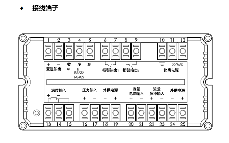 XSR流量補(bǔ)償積算(suàn)記錄儀(yi)流量積(ji)算儀 外形(xing)尺寸及(ji)接線端(duan)子