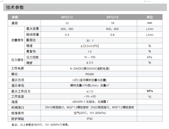MF5219氣體(ti)質量流量計技術(shù)參數: